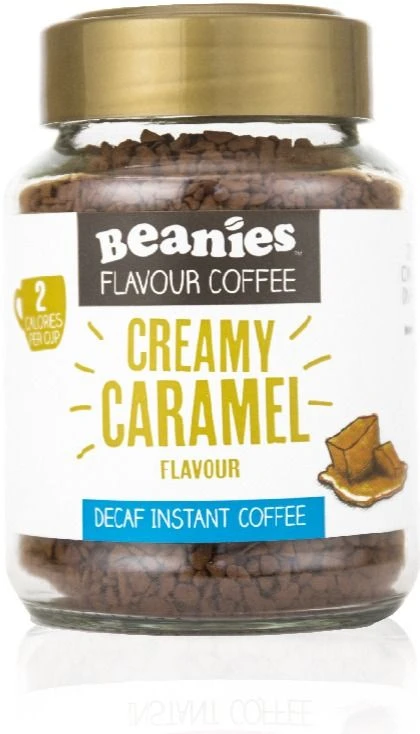 Beanies Decaf Creamy Caramel a decaffeinated indulgence of a sweet and smooth cup of coffee. A little treat after a daily work, only 2 calories per cup.