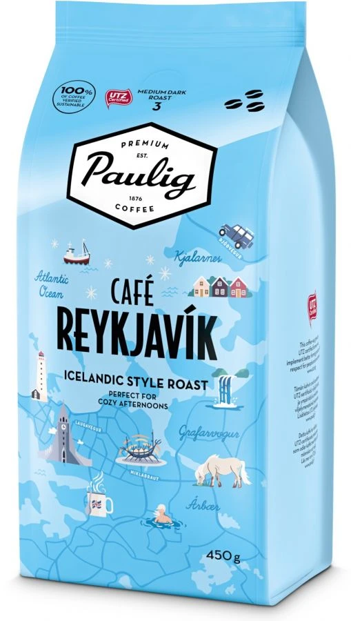 Coffee is part of the life for the nature-loving Icelanders, both at home and in cafés and outdoors in the midst of a breathtaking scenery. The medium dark Café Reykjavík coffee blend is roasted with 100 % Arabica beans and you can find hints of toffee in its fruity and sweet taste.