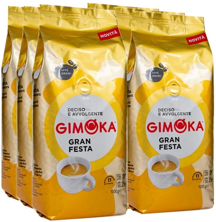 The composition of Gimoka Gran Festa espresso coffee consists of a blend of 30 % Indonesian Arabica and 70 % Brazilian Robusta. The right composition in combination with a carefully selected, strong method of roasting, gives the coffee an unusual aroma and intense taste. The high content of the Robusta beans in this espresso blend gives the coffee a high level of caffeine.