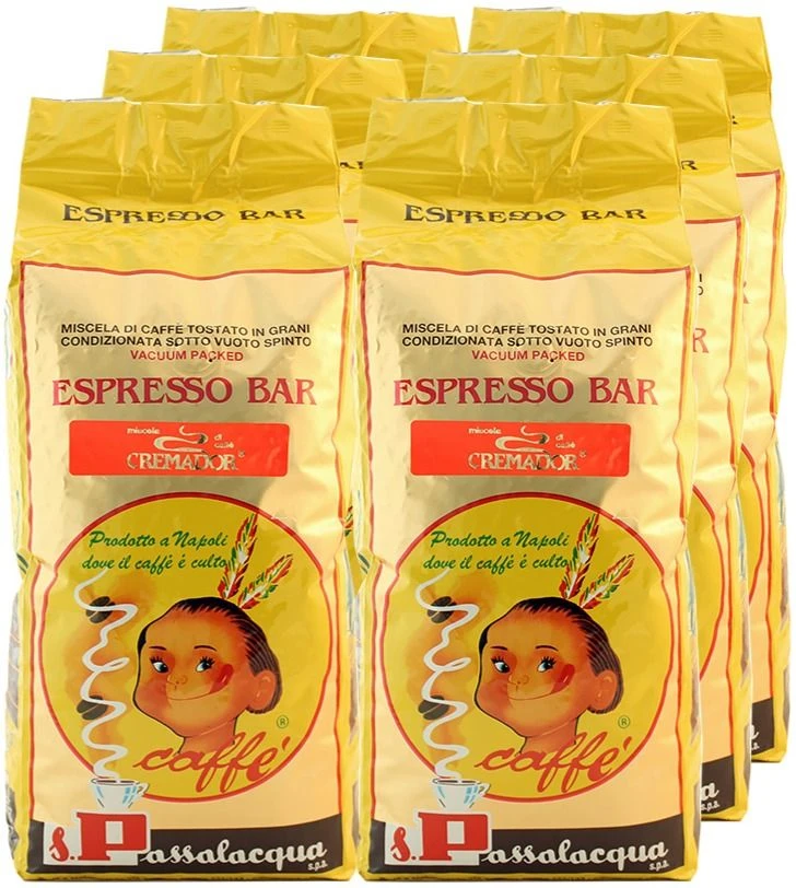 Passalacqua Cremador is a dark roasted espresso coffee with a lot of character roasted by the Passalacqua family roastery in Naples. The coffee contains, besides Arabica coffees, also 30 % Robusta for a stronger espresso experience. The use of robusta gives a rich, full-bodied crema on top of the espresso.