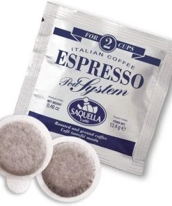 Saquella Decaf E.S.E. espresso coffee pods with a blend of the best quality decaffeinated naturally processed coffee. An Italian espresso coffee with a rich and persistant body, a sweet and intense flavour and an intense aftertaste.